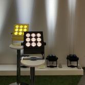 最後に、アウトドア・エリアの紹介です。ここの注目は、2種類の最新鋭〈High-light〉用投光器《レッズフォーカス・プロ》(スタンレー電気)。世界最狭角ビームを含むシリーズと、世界で唯一のゴールド光LEDのシリーズです。