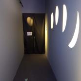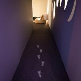 Dans la deuxième partie du tunnel, un effet de lumière interactif surprendra les visiteurs. Des empreintes de lumière apparaissent, projetées sur le sol lorsqu’on détecte votre entrée dans l’espace, pour vous guider vers la suite.
