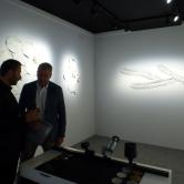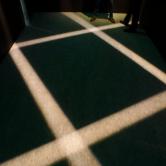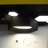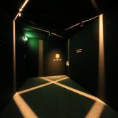 This demonstration is composed with very few lighting fixtures but with very significant and surprising effects to show this concept: linear-shaped down-lights in the ceiling make roundshaped beam on the floor (the dissociation of fixture and beam in terms of shape); only tiny fixture sharp beam lines surprisingly deform the space perception (the light defines the volume).