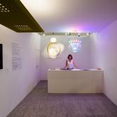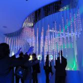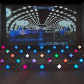 テクノロジーと幸福:この展示のために特注デザインされた繊細なレースのようなオリジナル・シャンデリアが、人の動きに連動するインタラクティブ操作システムで、見たことのないエフェクトを展開します。その他、光の色温度や演色性など、インテリア・クリエイションに欠かせない光の知識を紹介するコーナーも設置されます。