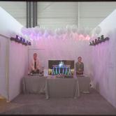 視覚に訴える幸福:LEDの次の光源と言われている有機EL。数年後のビックバーンが期待されるこの光素材を先取りして、うきうきするようなカラフルな光で、HAPPINESSの文字を展示します。業界唯一の二色塗り分け技術を持つメーカーによる、特別パネルが披露されます。