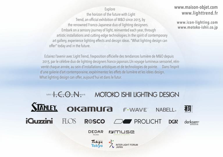 The lighting designers, Akari-Lisa Ishii and Motoko Ishii are invited by the organizer to present the latest trends in lighting at the Maison & Objet trade fair every September. This leading Japanese-French mother-daughter lighting designer duo has produced the official M&O LIGHT TREND exhibition for the past 13 years (2013 to 2026 editions).