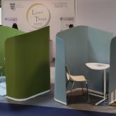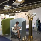 Le corner WORKSPACE présente, dans l’air du temps, des cabines de travail mobiles, en version single ou en version double (meeting ou co-working). Ces cloisons sont facilement manipulables et déplaçables, leur fabricant en améliore régulièrement la conception. Ils sont agrémentés de tables et de chaises de la même veine.