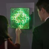 Décorer un tel espace est aussi un facteur de bien-être. Découvrez les « light tableaux », ce sont des œuvres d'art lumineuses énigmatiques composées de LEDs et de prismes spéciaux. Leur apparence interagit avec le mouvement du spectateur (by Stanley Electric).